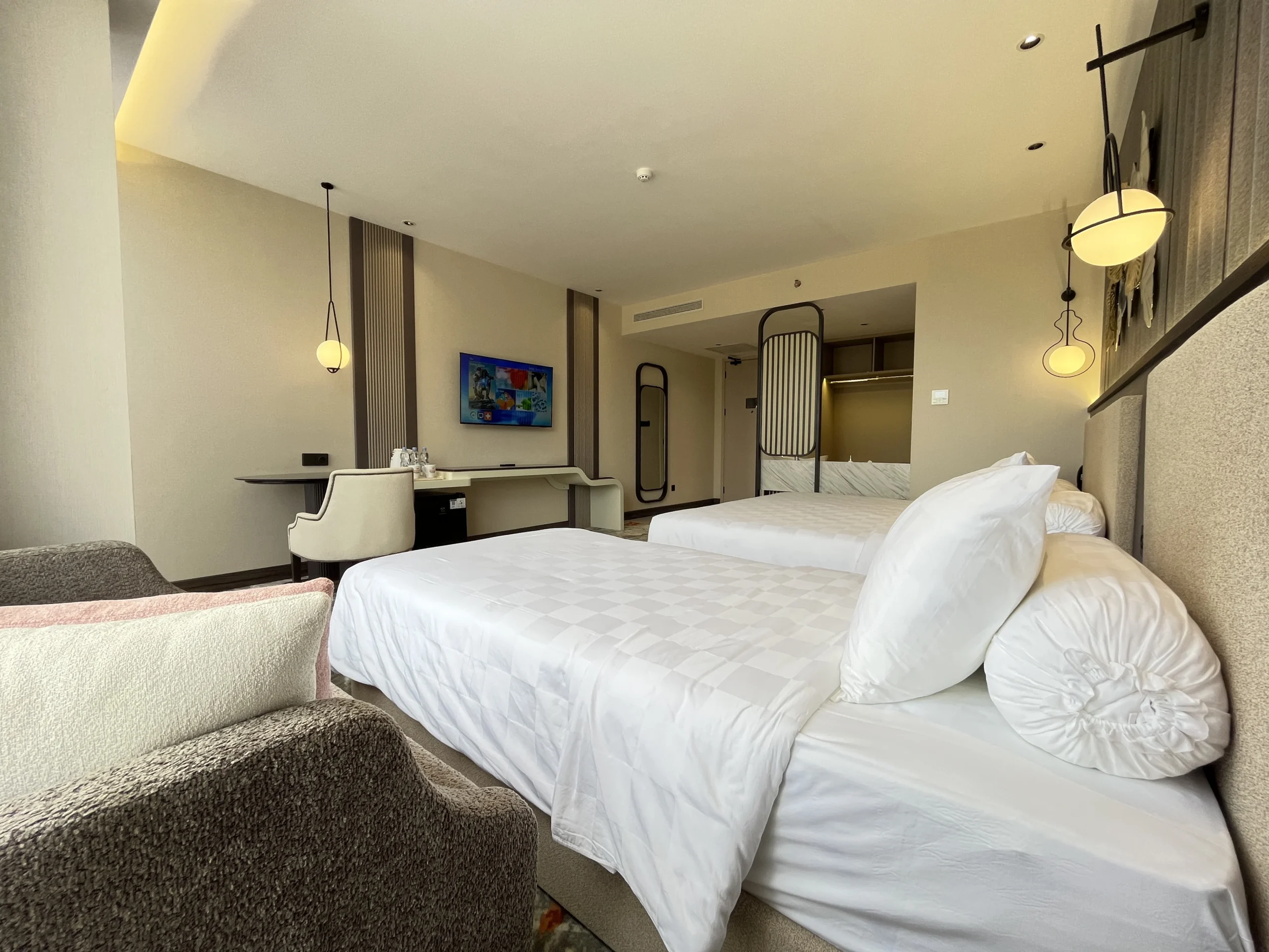 Nikmati kenyamanan menginap di ruang yang dirancang dengan detail dan sentuhan kemewahan. Setiap kamar menawarkan pemandangan menenangkan, atmosfer hangat, dan pengalaman berkelas yang menjadikan setiap momen terasa lebih berharga.